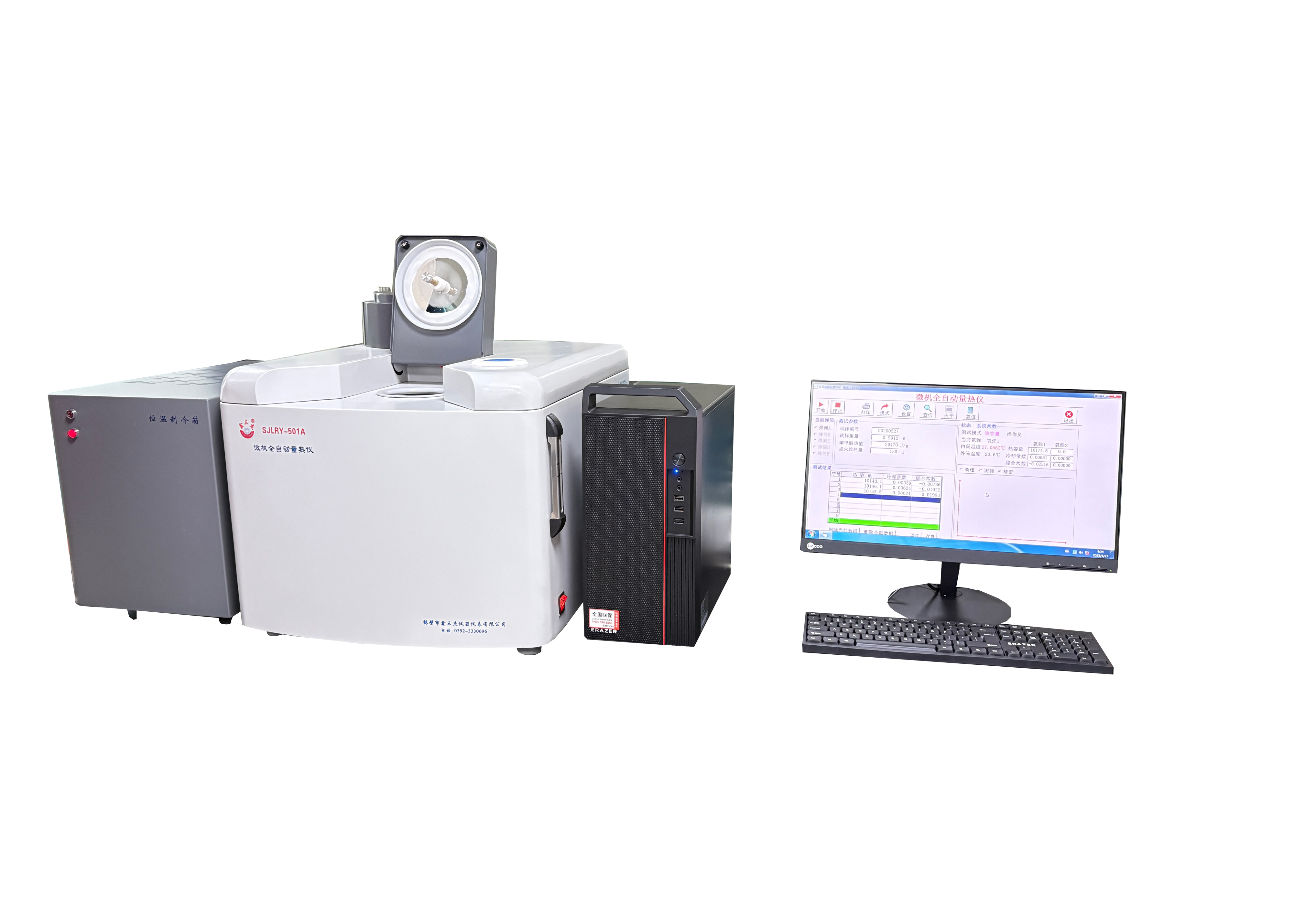 SJLRY-501A微机全自动量热仪是量热仪系列产品中的高配设备,此款适用于测试样品较多,对测试数据要求较高的用户。配置恒温系统,定量水杯式恒定内筒水量